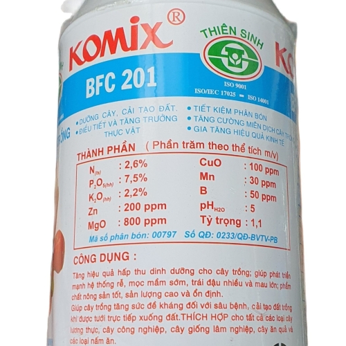 Phân bón lá KOMIX BFC 201 - chai 1 lít