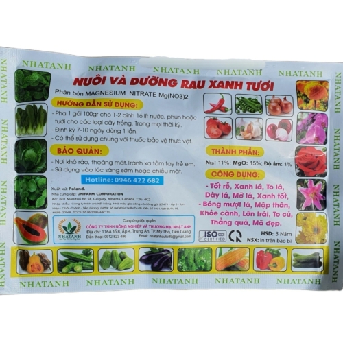Nts: 11%; MgO: 15%; Độ ẩm: 1%