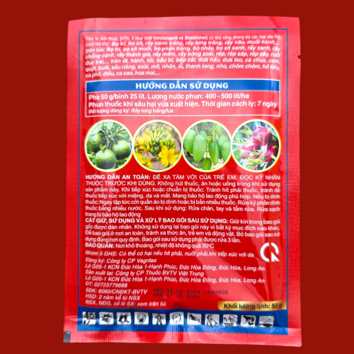 Theo từ điển thuốc BVTV, 2 hoạt chất (Imidacloprid và Dinotefuran) có khả năng phòng trừ các loại sâu hại chích hút như: Bọ trĩ, bọ xít, rầy cánh trắng, rầy lưng trắng, rầy nâu, muỗi hành, trên lúa; Bọ trĩ, bọ xít muỗi, bọ phấn trắng, bọ nhảy, bọ xít xanh, rầy xanh, rầy, chổng cánh, rầy thánh giá, rầy mềm, rầy bông xoài, rệp, rệp sáp, rệp vảy, ruổi, đục trái,... trên ớt, hành, tỏi, bầu bí, bắp cải, dưa hấu, dưa leo, cà chua cam, quýt, bưởi, sầu riêng, xoài, mít, nhãn, ối, thanh long, nho, chôm chôm, hồ tiêu, cà phê, điều, ca cao, hoa mai,..