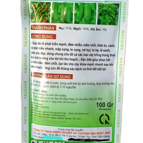 Ns: 11%; MgO: 15%; Độ ẩm: 1%