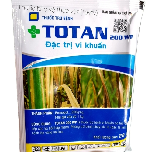Totan 200 WP là thuốc trừ bệnh vi khuẩn có tác dụng tiếp xúc và tác động mạnh. Phòng trừ bệnh cháy bìa lá (bạc lá và lúa) và bệnh vàng lá chín sớm hại lúa.