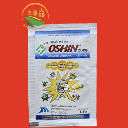 - Oshin 20 WP với hoạt chất Dinotefuran được phát minh và sản xuất bới tập đoàn hóa chất hàng đầu Nhật Bản – MITSUI CHEMICAL thuốc thuộc nhóm Neonicotinoid thế hệ mới (Furanicotyl ) chuyên trừ những loai côn trùng chính hút ,thu.ốc lưu dẫn nhanh,mạnh ,an toàn với môi trường và thiên địch.