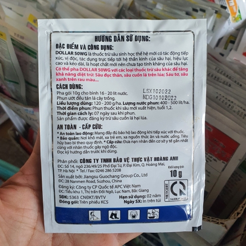 Dollar 50WG là thuốc được sử dụng trong Nông Nghiệp trong việc phòng và t r ị các loại sâu bệnh cây trồng mắc phải. Chỉ được sử dụng theo khuyến cáo của nhà sản xuất, không được sử dụng thuốc vào mục đích khác vì các thuốc BVTV hầu hết đều độc hại với con người.