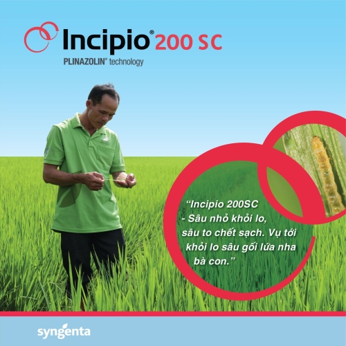 Chỉ với một lần phun trong giai đoạn làm đòng, Incipio® 200SC có thể cho hiệu quả kéo dài lên đến 21 ngày, cắt cả một lứa sâu hại, bảo vệ toàn diện cây lúa trong suốt giai đoạn đòng trổ, giúp giảm thiểu chi phí và gia tăng lợi nhuận cho bà con nông dân.